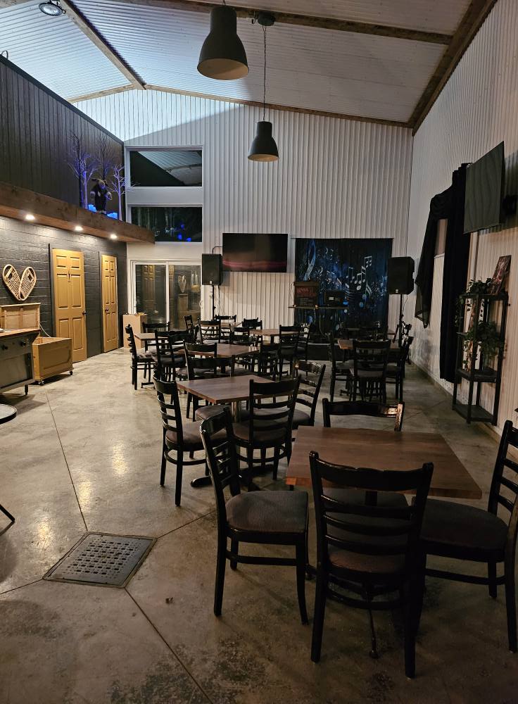 Kabane Karaméchoui Pierre Veilleux vous offre une salle à manger pour venir déguster notre succulent méchoui à volonté, en poutine et bien plus, sur le bord du feu.