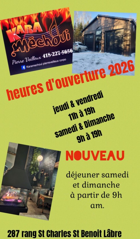 Bon d’achat de 40$ chez Karaméchoui Pierre Veilleux de Saint-Benoît-Labre.